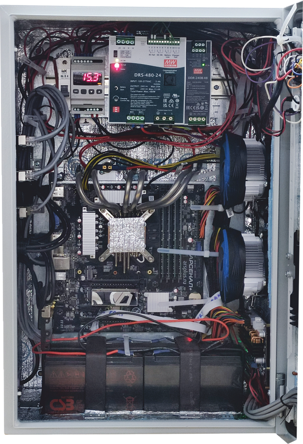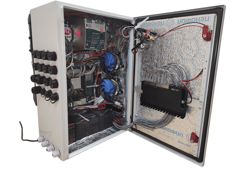 • Система поддержания микроклимата: для обеспечения стабильной работы оборудования в широком диапазоне температур, в ПАК применена эффективная система охлаждения и обогрева. Используется пассивный радиатор для процессора, а термоэлектрические модули (эффект Пельтье) обеспечивают охлаждение или обогрев других критических узлов.